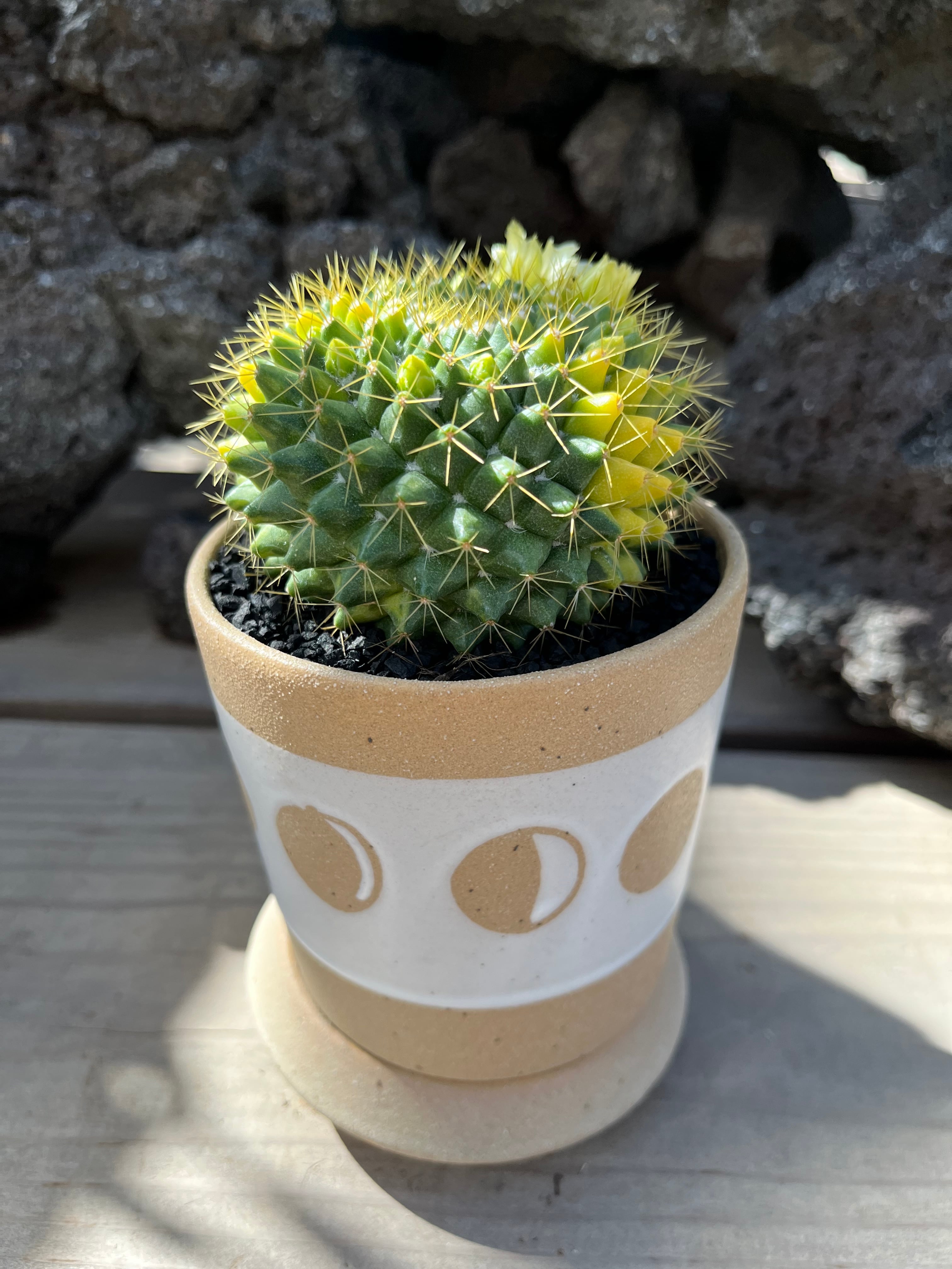 マミラリア 金洋丸錦は、明るい場所で育てるのが理想ですが、直射日光には注意が必要です。水やりは土が乾いたら行い、過湿には気をつけましょう。