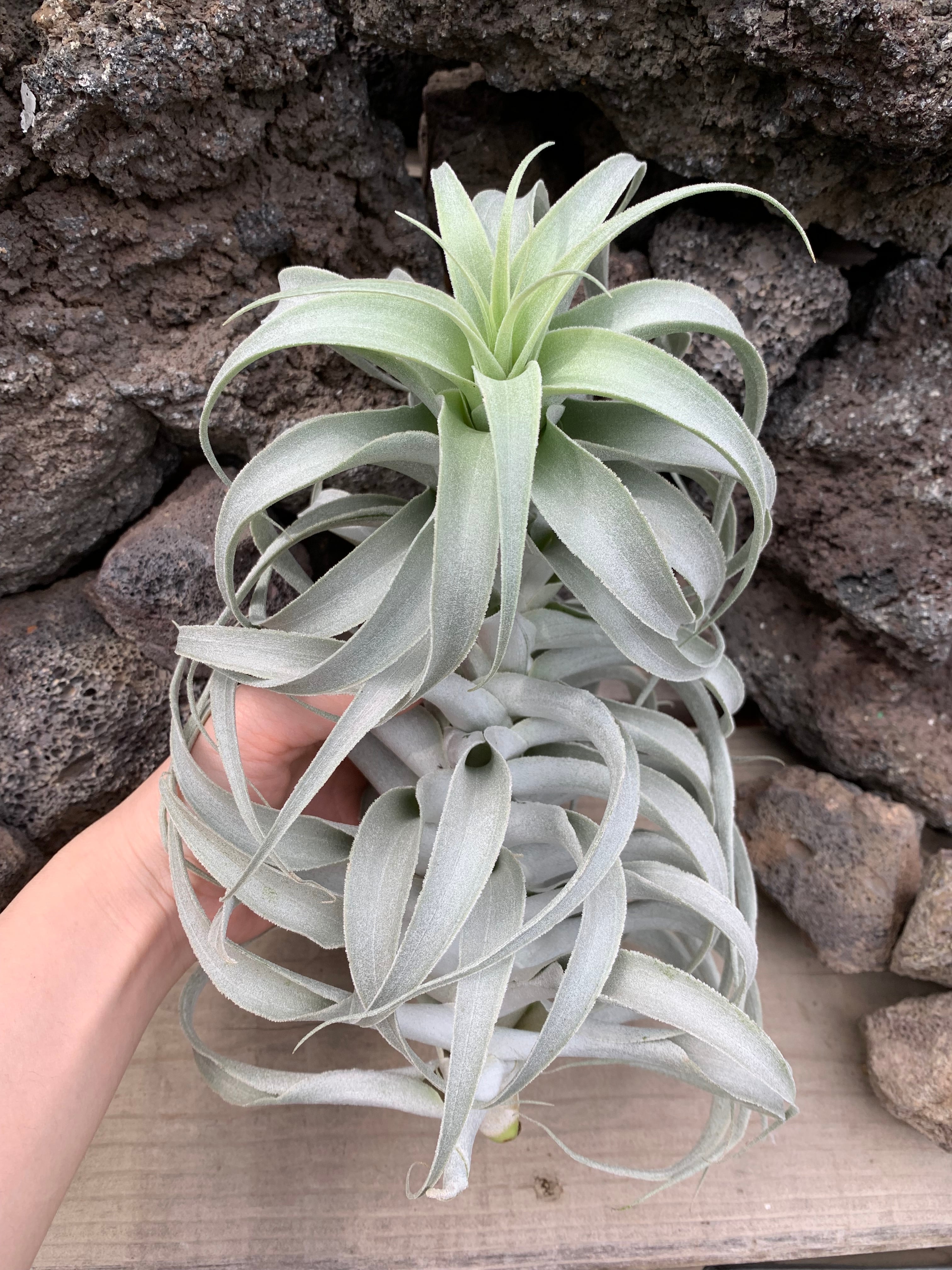 ★チランドシア カクティコラ ロングフォームシルバーは、ペルー原産の砂漠地帯に自生する個性的なエアプランツです。美しい銀色のトリコームに覆われた長い葉が特徴的な希少価値の高いですチランジアです。