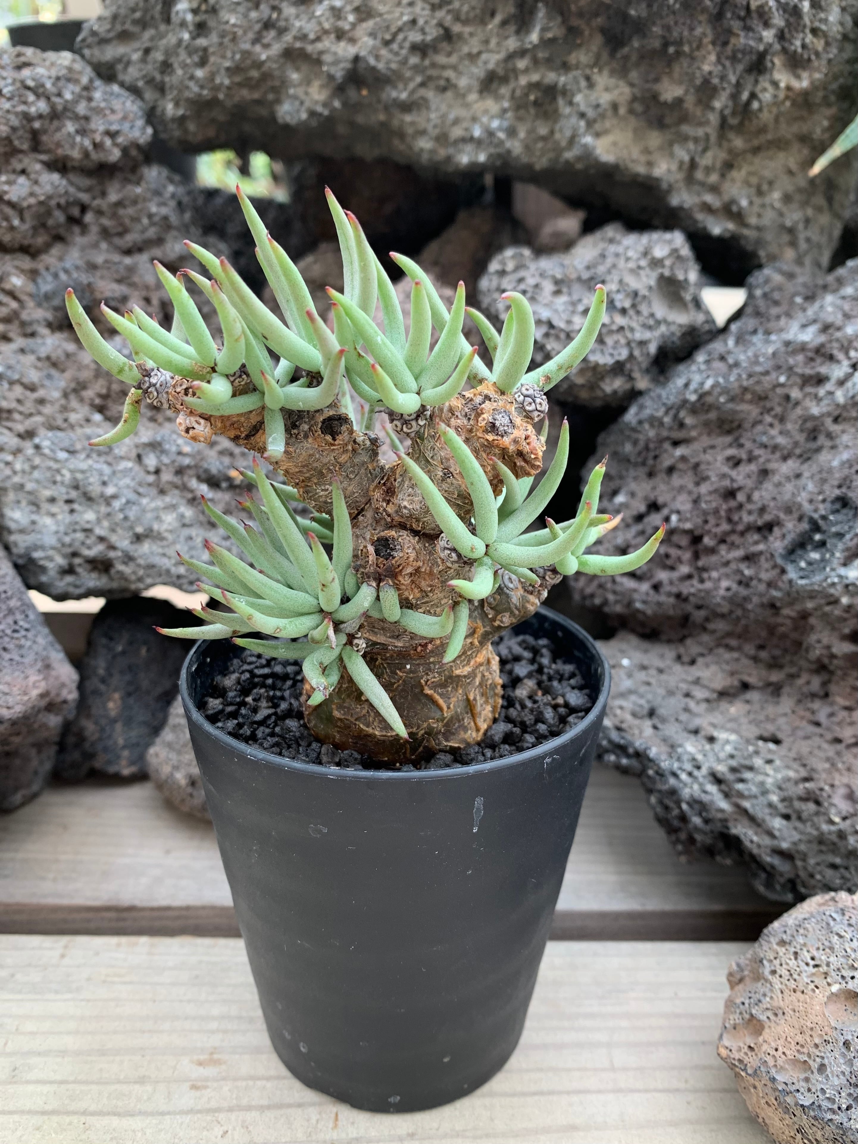 ★チレコドン ペアルソニー(白象)は、南アフリカ原産の魅力的な多肉植物です。太った、どっしりとした塊根から出ている短い枝が特徴的なチレコドン・ペアルソニー。また葉が落ちる夏になると、葉が落ちた部分が白く残る習慣があります。