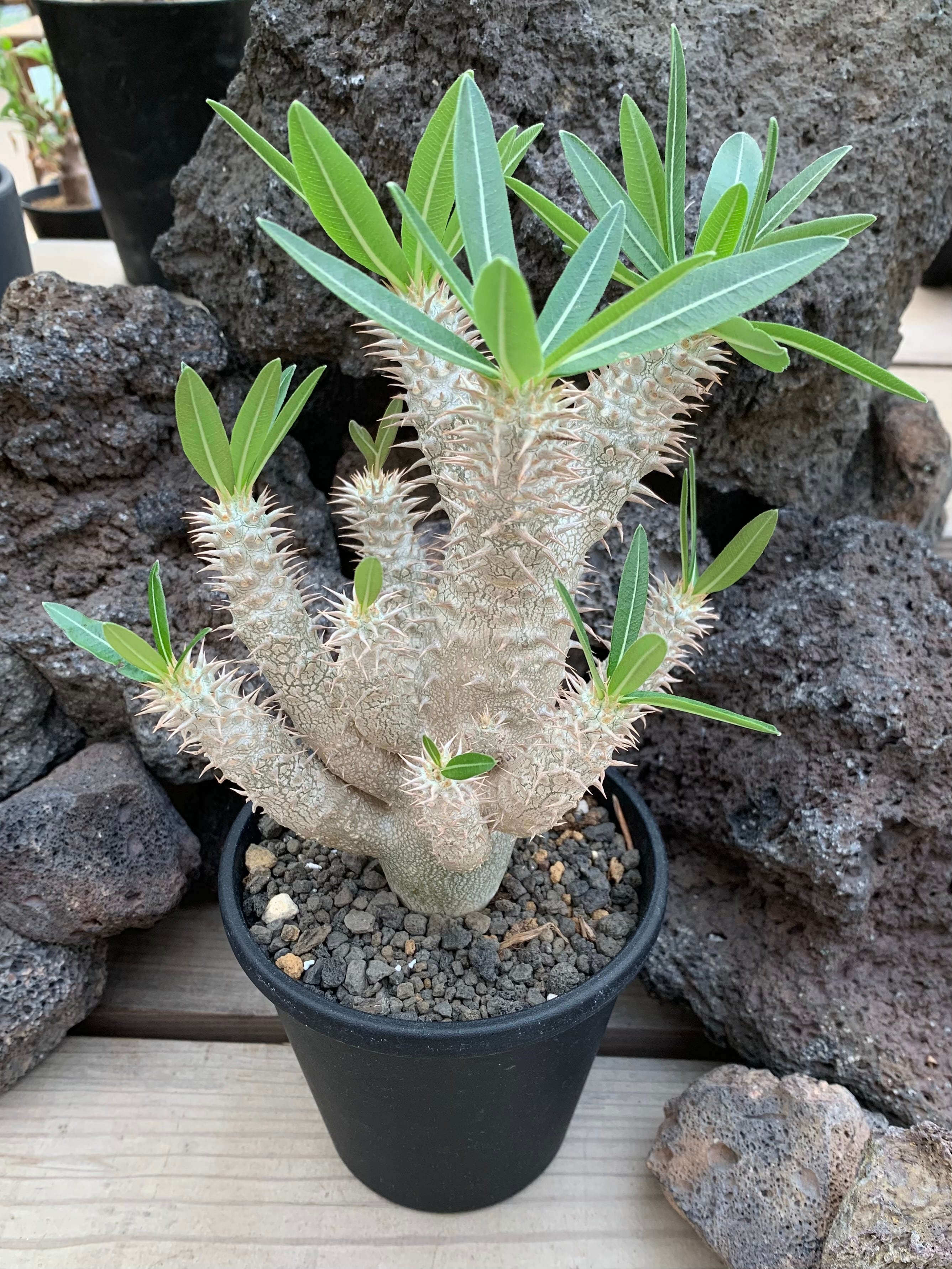 ユーフォルビア パキポディウム イノピナツムは、明るい日陰を好みます。水やりは土が完全に乾いた後に行うが理想的で、特に冬季には水やりを控えめにすることが重要です。通気性の良い環境で育てることで、健やかな成長を促しますので、ぜひご注目ください。